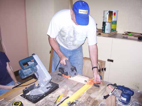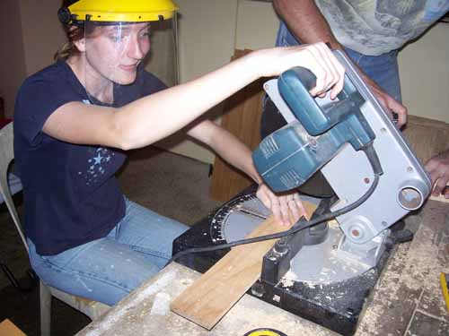 Here I am getting a little too into my project. BTW, that's a REAL saw! I learned how to use one during our long endeavor!