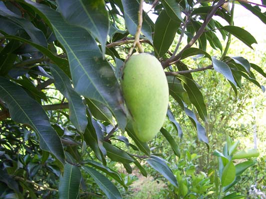 Here's an up-close picture of a Mango. This is one of the first one's from our trees!